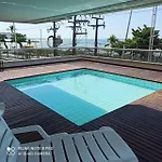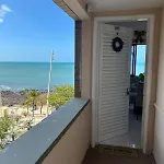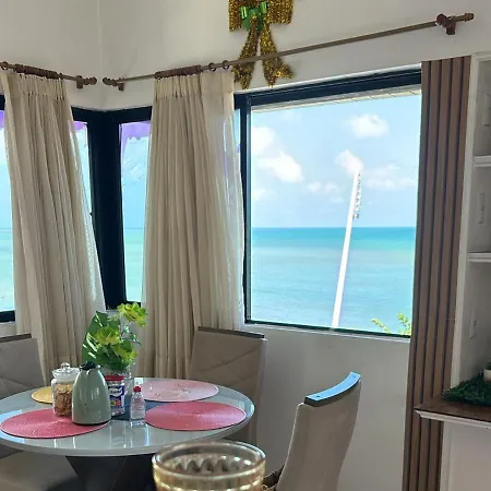 The 57 m^2 Flat Beira Mar Com Vista Total Para O Mar Apartment, located in the Mucuripe district, within a 10-minute drive of Mercado dos Pinhoes Market, features views of the garden. Offering access to a private swimming pool, this 1-bedroom apartment is near Japanese garden of Fortaleza.